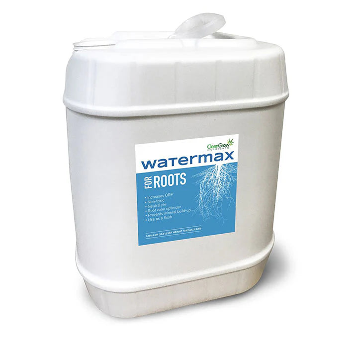 Root-zone optimizing water-quality additive. Watermax has been trusted as hydroponics’ leading all-in-one water treatment since 2006. It has been marketed under several different labels through the years due to its high level of effectiveness. However, CleanGrow’s Watermax remains the industry’s original, 100% authentic source of hypochlorous acid that is blended in a formula optimized for hydroponics. Watermax excels in water culture, ebb & flood, aeroponics, and virtually any other hydroponics system available on the market. When used properly, you can expect the following features and benefits out of every bottle of Watermax you use: OMRI approved/ Neutral pH/ Increases ORP/ Stimulates robust, bright-white root growth/ Helps fight scale and biofilm/ Non-toxic/ Use as a flushing agent/ Low TDS/ Reduces chance of root rot and other waterborne pathogens by promoting healthy water.