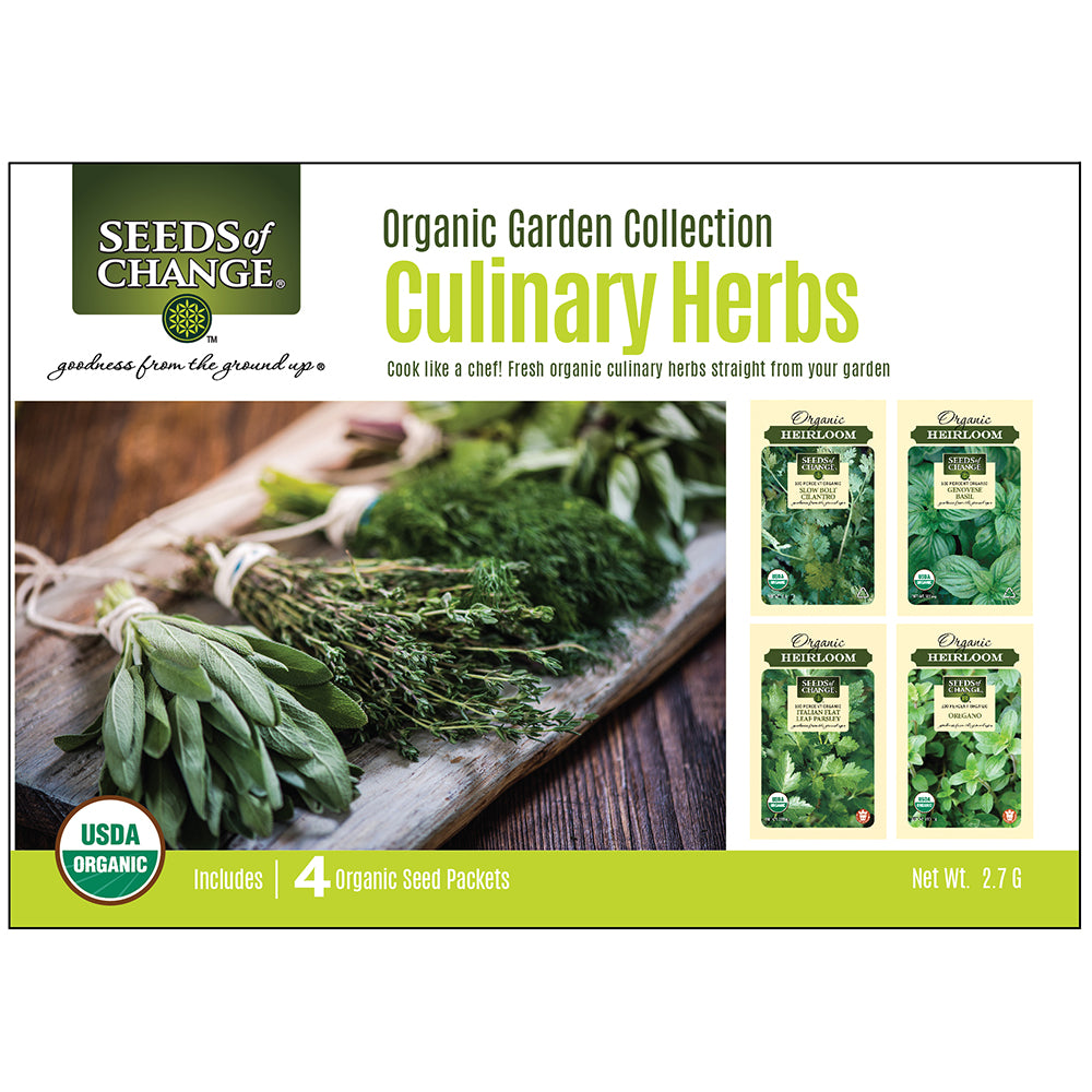 Cook like a chef! Fresh, organic, culinary herbs from your garden. Includes all heirloom varieties of Slow Bolt Cilantro, Genovese Basil, Italian Flat Leaf Parsley, Greek Oregano.
